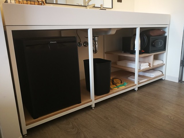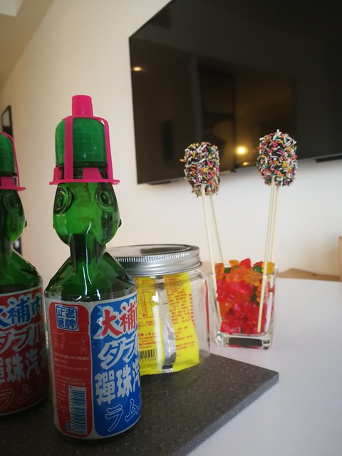 另外,除了Nespresso膠囊咖啡機和一般免費茶水供應,茶几上還擺放了一些古早味的彈珠汽水和懷舊糖果等零食。
