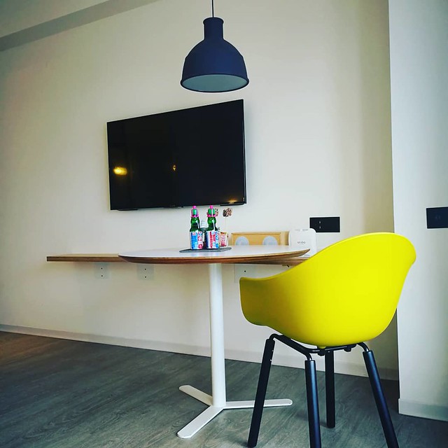 房間其他的基本設備,差電位等都非常充足,我覺得比較特別的是書桌旁的椅子,竟然是瑜珈彈力球,實行一邊工作一邊鍛煉身體!
