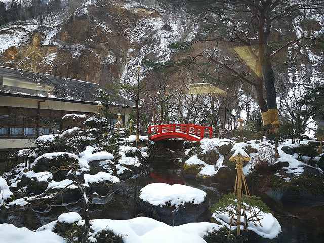 位於福島市附近的土湯溫泉區,春夏風光明媚,秋冬楓紅處處。山水莊有著被大自然所包圍的庭園、以及當地當季的美味食材。晚餐非常豐富,每一道都很小巧精緻,食材都很新鮮,現煮的釜飯更令我回味無窮。 另外還有自助餐供選擇。