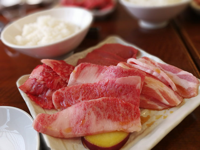 福島牛是全日本47種黑毛和牛裏排行12的最佳品種,所以一定要來試試。日本全國農業協會組合福島縣本部(JA全農福島)直營烤肉餐廳在福島分別有兩間,而今日吃午餐的《牛豊朝日店》 就是其中一間。早前我曾經親身參觀過「福島縣農業綜合中心」的輻射檢測過程,原來動物的頸脊是最容易受到輻射污染的,通過頸脊的輻射安全檢測的肉類就絕對可以安心食用。而所有JA直營的店舖及餐廳 所售賣的肉類家禽,當然都已經通過了這種嚴格測試,符合國際世衛的最高標準,而且這裏只會採用生產優質牛肉的農家。霜降牛肉柔軟,色澤鮮艷,肉味濃厚。另外還有用紫蘇等純植物性飼料所飼養的「麓山高原豚」。