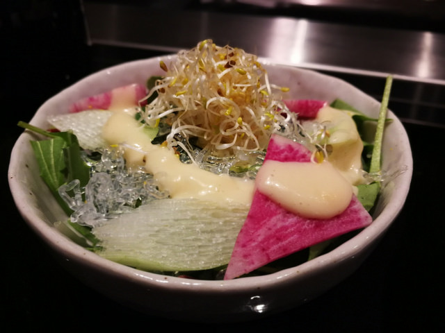 傍晚六點走到雪月花的總店發現原來今天是定休日,於是便去了大約距離5分鐘腳程的分店。可能時間早的關係,在沒有預約的情況下我們順利入座。為免油煙弄污衣物 ,入座前服務員先把我們的衣物收好。