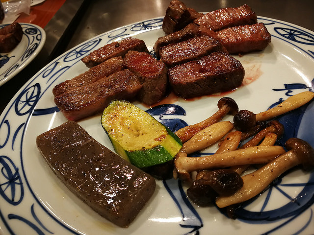 來到神戶怎能不吃吃有名的神戶和牛。我和朋友就去了其中一間人氣高企的Steakland神户店(ステーキランド 神户店)。眾所周知神戶和牛的價錢不便宜,想要以最平的價錢吃到,一定是選午餐時段,最便宜大概三千多日元便能吃到,但是就必須大排長龍,於是我們就選了傍晚比較早的時段來,比較少人。