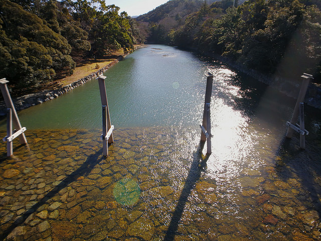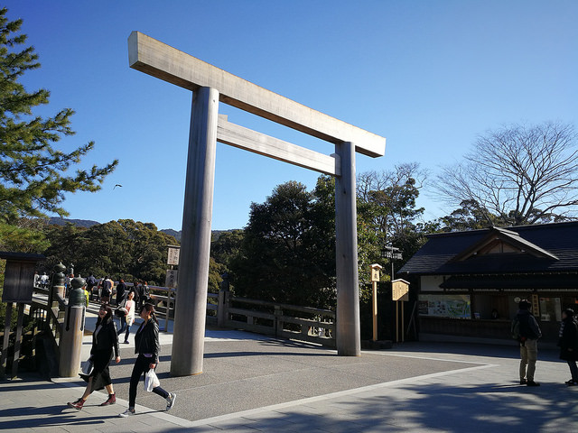 神聖莊嚴的神殿也被超過數百年樹齡的神木所包圍,殿身就是由這些杉木所建,還有清澈的五十鈴川,四周充滿靈氣。為了令「神宮」生生不息,人們從而得到新的力量,每二十年神殿都要翻新一次,這個重要的「遷宮儀式」已經舉行了超過一千三百年。正式參拜的順序路線是從外宮參拜完後再乘車到內宮參拜,最後可以到內宮外的商店街逛逛,品嚐當地美食。