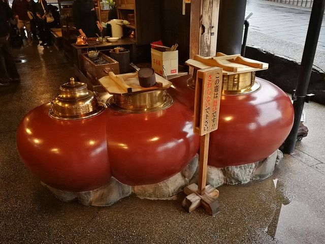 在伊勢神宮參拜後,順道到旁邊古色古香的街道,托福橫丁(おかげ横丁)逛逛充滿當地特色的店舖。其中最有名氣的相信是到排隊名店「赤福本店」裏吃日本三大伴手禮之一的「赤福餅」了。赤福創業於寶永四年(1707年),至今已經超過三百多年歷史了,而本店則是建於1877年的建築物,古典優雅。