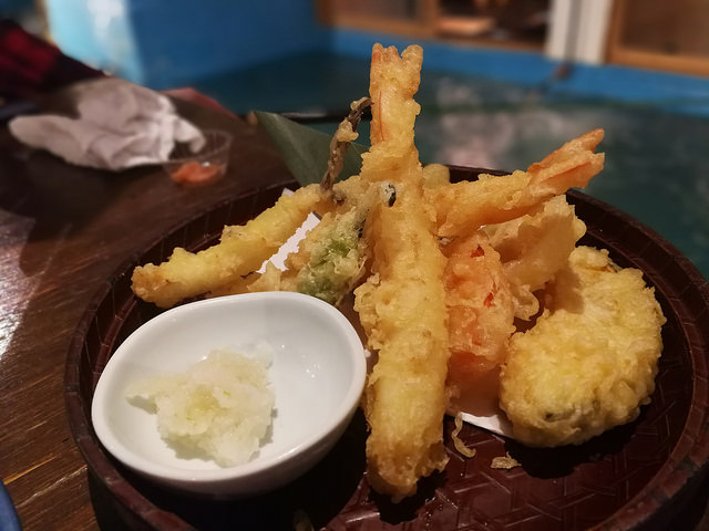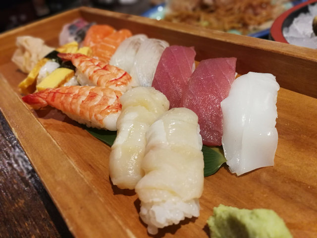 大廳的座位設於兩艘大型木船內,旁邊的水池養滿了肥美的魚鮮,真的有點像身處大海釣魚的感覺呢。另外還有個室,但釣魚位置的活動範圍狹窄,比較難釣得到。魚鮮料理的價格分為兩種,自己親身釣再給餐廳烹調會比正常價格稍為便宜一點,只需額外付100円買魚餌,借用魚竿則是免費的。如果有人釣到魚的話,店員便會拍手擊鼓,帶熱全場氣氛。然後就告知店員想如何烹調。我們把釣到的鯛魚和比目魚分別做成了刺身及壽司。另外還可以選擇天婦羅或原條燒烤,甚至一魚兩食等做法。大家可以預先在官網上訂枱,十分方便。
