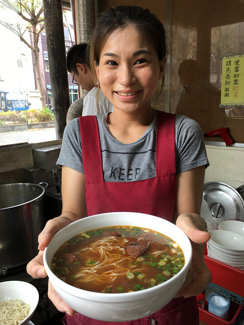 早兩星期的台中之旅, 我們去了一家有三十年歷史的牛肉麵店, 一家每天都大排長龍,以賣麵類、飯類、湯類、滷味為主的「冠軍牛肉大王」,其紅燒牛肉麵可算是台中最具代表性之作品,與一般常見牛肉麵比較,湯頭口味自然,較清爽不油膩,稍微有些中藥的清香味,有當歸、枸杞等藥材。牛肉方面用料感覺份量頗夠,使用是使用澳洲牛肉厚片之牛腱肉,每碗四片,肉身滷得超入味,而且口感柔韌中帶著牛筋的滑嫩,而牛肉似乎因其中性烹調方式,而呈現出清燉湯頭裡的牛肉吸滿中藥香氣,入口後可嘗到許多層次的滋味。面除了牛肉麵之外,值得留意一試的還有其辣椒醬,也是台中一帶很有名氣的。