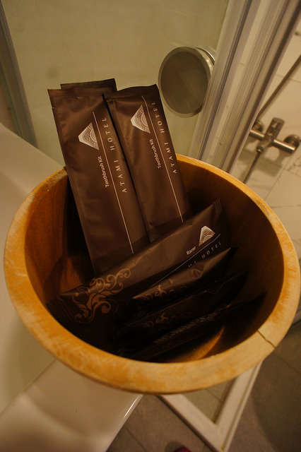飯店設有三種類型泡湯的溫泉設施: 位於底層B1 的大眾浴池及「白磺湯屋」,以及設於三樓的「溫旅岩湯客房」。用小圓石砌成的大眾浴池,不算很大,水溫適中,加入了自然的元素,配合了特別的光影設計,令人有點置身天然洞窟的感覺。