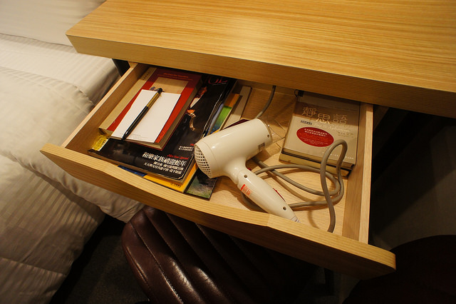 無論新舊客房設備也十分齊全,一般的液晶電視機、冰箱、熱水壺、吹風機、茶包、咖啡包等都有,如果忘了帶轉駁插頭也不擔心,因為這裏有三孔轉接插座,非常貼心。