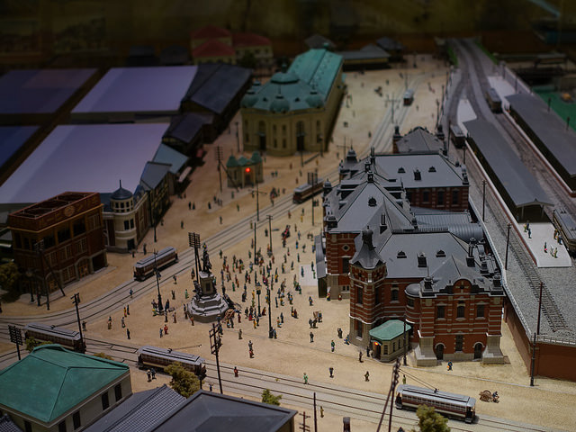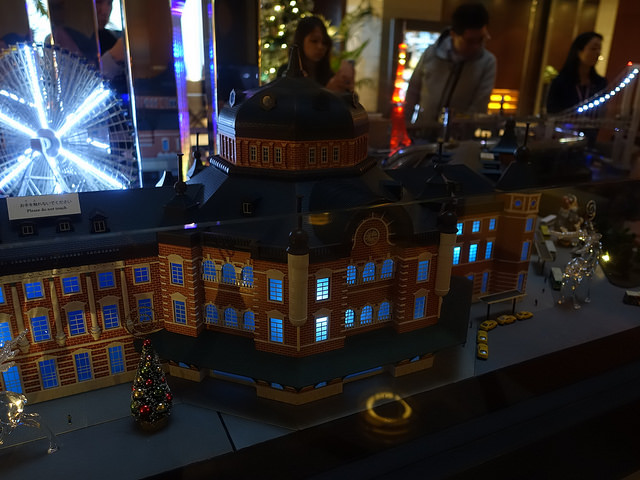 中庭的中央更有一個東京車站週邊的模型,除了可看到電車及新幹線模型軌道上跑之外。另外在模型中更會發現上有造工仔細的重要地標, 例如: 東京車站、東京鐵塔、晴空塔及彩虹大橋…等等。